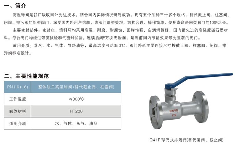 本公司設計生產的一體式防泄漏耐磨耐高溫排污球閥采用進口對位聚苯閥座。法蘭標準有:國標、美標、日標、德標法蘭。材質有不銹鋼、碳鋼球閥、合金鋼。
